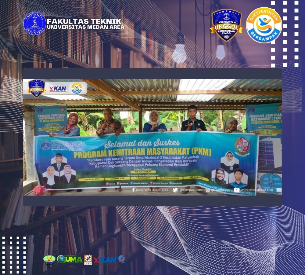 Tim Program Kemitraan Masyarakat (PKM) Universitas Medan Area (UMA) melaksanakan kegiatan sosialisasi inovasi pengasapan ikan berbasis energi ramah lingkungan di Desa Marindal II, Kecamatan Patumbak, Kabupaten Deli Serdang, pada Selasa, 23 Desember 2025.